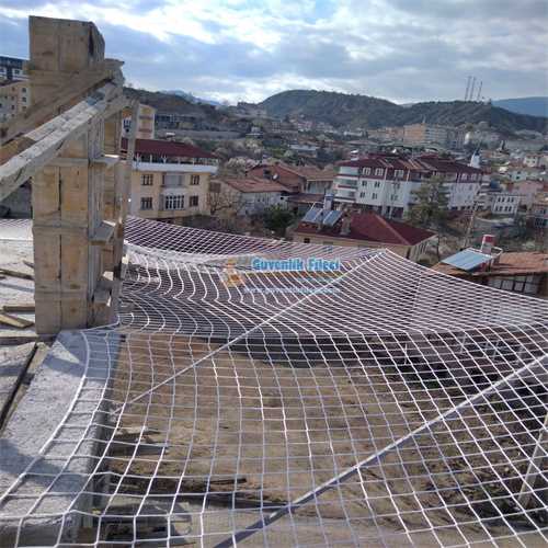1,5 tonluk 6 mm 10*10 güvenlik filesi 7 m düşme mesafesine kadar uygulanabilir.